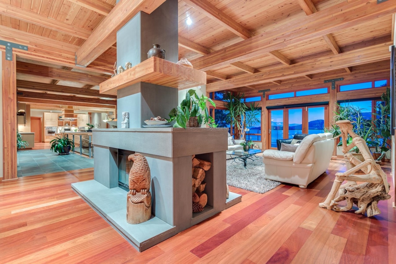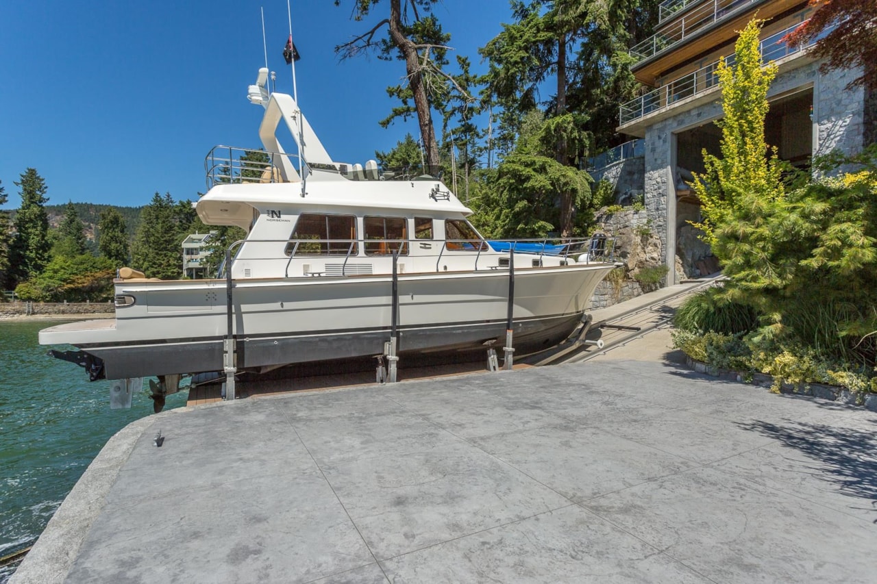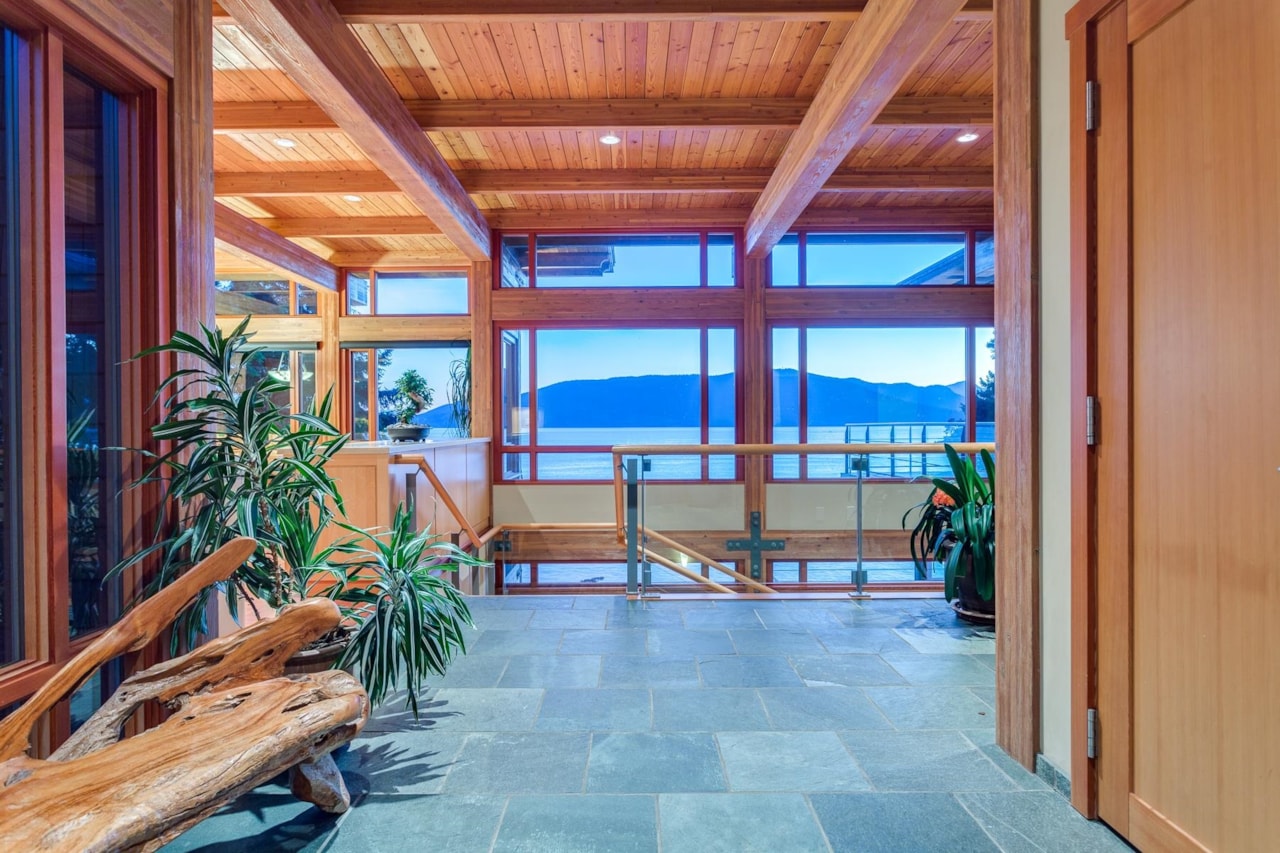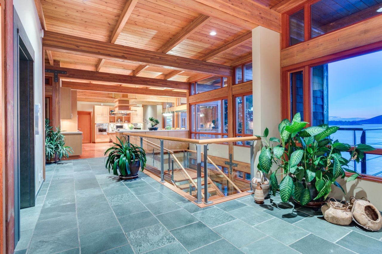 $26,888,000- Remarks: Exceptional West Coast post and beam west facing WATERFRONT ESTATE designed and built by Lepik Construction that is a truly a one of a kind masterpiece! Offerring nearly 13000 SF with 3 levels of living space, 5 bedrooms, 7 baths, 4600 SF of terraced slate patios, outdoor pool/ hot tub, indoor pool/ hot tub, 4 level indoor elevator, geo thermal radiant heating, 8000 gl. front entry koi pond, 5 car heated garage, and an incredible 50 foot attached indoor private yacht garage with private elevator access believed to be the only of its kind in North America! Gourmet chefs kitchen and cabinetry by Redl Kitchens, Brazilian cherry floors and floor to ceiling glass! The 31600 SF West facing private estate and this home are truly World Class like no other! Amazing!!
